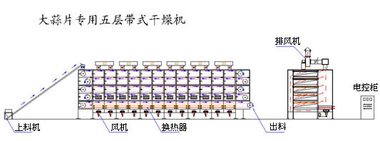 案例概述:為了適應大蒜片、中藥材生產(chǎn)時(shí)要求產(chǎn)量大及終水分較低的特點(diǎn),常州市統一干燥設備有限公司為該類(lèi)產(chǎn)品專(zhuān)門(mén)設計生產(chǎn)了五層帶式干燥機。