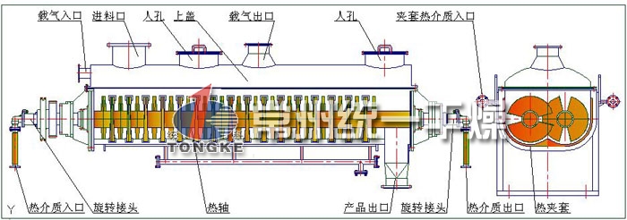 三、印染污泥干化設備,印染污泥空心槳葉干燥機,印染污泥烘干機結構原理: